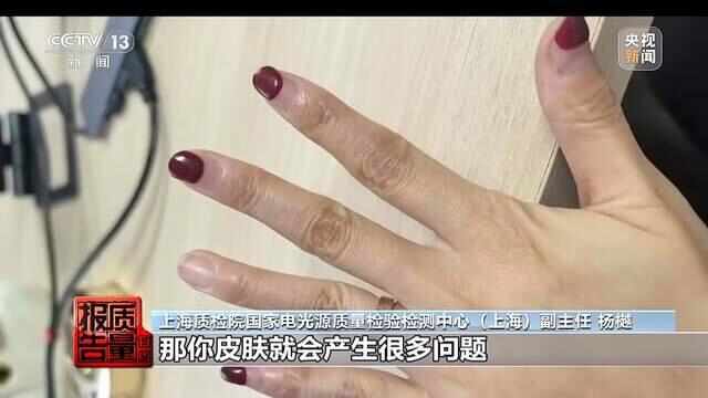 上海市消费者权益保护委员会消费指导部主任 蔡恩:很多消费者反映,他们在美甲的过程中指甲发生了变脆、断裂,甚至有一些皮肤变黑的情况。鉴于这个情况,我们对这个行业进行了深入了解和调查。最后,我们聚焦于美甲灯这个产品可能存在相应的质量隐患。