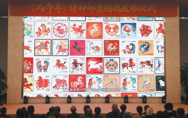 当天的发布会还公布了中国邮政贺年有奖明信片的图案,这些设计图稿均来自《丙午年》特种邮票征集活动。记者看到,这些作品风格、色彩各具特色,有的是卡通形象的马,有的是马踏祥云,还有的以多匹骏马的形象组成一朵绽放的花朵。