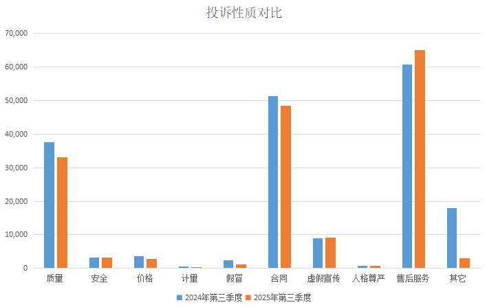 投诉性质方面,售后、合同和质量依然是热点,售后服务(64999件)、合同(48480件)和质量(33032件)三类性质的投诉量较大,共146511件,占投诉总量的87.93%。其中,售后服务类投诉涨幅较为明显,同比增加4286件,上涨7.06%。售后服务类投诉主要集中在家用电子电器(13982件)、生活社会服务(9761件)和日用商品(5623件)领域,售后态度消极、服务与承诺不符、保修政策落实难等是引发相关投诉的主要原因。合同投诉则较多出现在互联网服务(33676件)、教育培训服务(4032件)和生活社会服务(3179件)领域,主要问题有合同条款设置严苛不公平、不按约履行合同、违约金比例高等。质量是消费者最为关注的方面,随着品质消费需求提高,关于质量的投诉依然多发、居高不下。