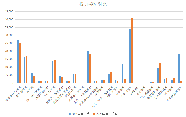 其中,商品类投诉73459件,占投诉总量的44.09%,同比下降5.37%;居前三位的是家用电子电器类(25155件)、服装鞋帽类(16891件)和日用商品类(14068件),三类投诉共56114件,占商品类总量76.39%。服务类投诉91819件,占投诉总量的55.11%,同比增长0.96%;居服务类投诉前三位的是互联网服务(40936件)、生活社会服务(18291件)、教育培训服务(12500件),三类投诉共71727件,占服务类总量78.12%。